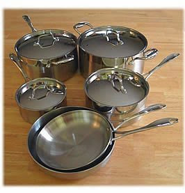 The Stainless collection is made of a 5 ply bonded construction. Three special grade layers of aluminum are in between the high polished 18/10 stainless steel cooking surface for immediate heat response and a magnetic stainless steel exterior for optimum cooking results. This 10 pcs cookwre set consists of:
